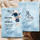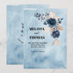 Faire-part de mariage minimaliste à l'aquarelle bleue avec arrangement floral bleu royal. Mise en page simple et épurée avec image au verso. Téléchargez facilement votre propre image ou photo pour la rendre unique. Modifiez les polices, la couleur et les libellés. Avec l'option de télécharger et d'envoyer votre annonce par voie électronique.