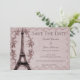 Annoncez votre jour de mariage à venir avec une annonce "save the date" à la Tour Eiffel rose. La conception "Save the Date" présente la Tour Eiffel ornée d'un encadrement fantaisiste sur un fond grunge et d'une embellissement de timbre postal. D'autres articles de papeterie de mariage sont également disponibles avec ce design. Besoin d'aide pour la personnalisation ? Veuillez me contacter et je m'occuperai de la formulation et des détails pour adapter ce design à votre satisfaction.