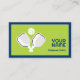 Individuelle Visitenkarten für Pickleball-Coaches. Weiß gekreuzte Pickleball-Paddeln mit anpassbarem Text auf beiden Seiten. Pickleball Court auf der Rückseite. Dunkelblau und 2 Grüntöne.