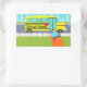 Hey! Warte auf mich! Diese individuell anpassbare Aufkleber für den Schulbus-Cartoon wird Ihren Tag zu einem guten Start in den Tag führen. Es enthält einen Cartoon, der von einem Kind zeichne, das eine rote, karierte Mittagspause mit sich führt, während er einen verrückten Schnabel für den Schulbus macht. Das Kind trägt eine königsblaue Hose und ein türkisfarbenes Shirt. Er läuft einen orangefarbenen, gepflasterten Bürgersteig hinunter. Der Bürgersteig ist von dem grünen Rasen umgeben, der nur in der Vorstadt zu finden ist. Es gibt auch einen weißen Zaun. In der Straße sehen wir einen lebhaften, gelben Schulbus mit Aquafenster und Glastüren. Der Name auf der Seite des Busses ist anpassbar. Klicken Sie einfach auf das Symbol "Anpassen", um den vorhandenen Text durch Ihren eigenen zu ersetzen. Hinter dem Bus sehen wir einen Wasserhimmel und die Silhouetten von Zedernbäumen. Bestellen Sie es jetzt. Du will nicht zu spät zu sein!
