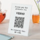 Passen Sie dieses Podestzeichen mit drei Zeilen anpassbarem Text und einem benutzerdefinierten QR-Code an. Lass den Kunden, den QR-Code zu scannen, um für Waren zu bezahlen über die Zahlungsplattform Ihrer Wahl. Ideal für den Verkauf von Werften, Kunsthandwerksmessen und andere Veranstaltungen, bei denen Produkte verkauft werden.