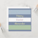 Horizontal pastellfarben, hellgrün und staubblau gestreiftes Muster und anpassbarer Text: Happy Oaster. Klicken Sie auf Bearbeiten, um den Text und den Namen nach Ihren Wünschen zu ändern.