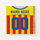 Dieses Design ist ein Fußball / Fußball Stil Jersey mit roten und gelben senkrechten Streifen und blau trim, der Hintergrund "Haut" Farbe kann geändert werden, klicken Sie einfach auf CUSTOMIZE. 8,5" x 8,5" Spiralfolien mit laminierten Covers, und eine Auswahl an Papier Stil, einschließlich Sketchbook, regiert, Hälfte regiert. Die Vorderseite und die Rückseite der Notebooks sind im Jersey-Stil gestaltet, sodass Sie Ihren eigenen Namen und Ihre eigene Nummer hinzufügen können. Verwenden Sie die Felder rechts neben dem Bild, um den Text zu ändern. Diese Notizbücher eignen sich hervorragend zum Skizzieren, Listenmachen, behaltend Rezept, zum behalt Ihrer Sportstatistiken und zum Verleihen von Schulgeschenken für Schüler. Einzigartige personalisierte, maßgeschneiderte Sportjersey-Geschenke für Sportfans und Spieler in Ihrem Leben!