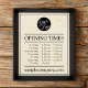 Berufliche Geschäftsöffnungszeiten, um sich persönlich zu präsentieren. Fügen Sie Ihr Firmenlogo und Ihren Text hinzu. Entdecken Sie mehr Auswahl von Designs für diese Vorlage in meiner Sammlung OPENING HOURS.