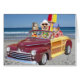 Zwei gelbe Labradore und ein Rind in hawaiianischer Kleidung in einer Woodie. Im Inneren sagt es Happy Birthday in Hawaiian, ... aber man kann das ändern.