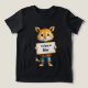 Machen Sie den T - Shirt Ihres Kindes einzigartig mit unserem bezaubernden Katzencharakter-Design! Dieser T - Shirt ist mit einem anthropomorphen Katzen mit orangefarbenem Fell, dunklen Flecken und einem freundlichen Lächeln ausgestattet und eignet sich hervorragend für Personalisierung. Die Katze ist in einer lässigen, roten Jacke, blauen Shorts mit Patches und roten Schuhen gekleidet, mit einem weißen Schild, das an den Namen oder die Botschaft Ihres Kindes angepasst werden kann. Das lebendige Design bringt Freude und Lächeln in den Kleiderschrank eines Kindes.