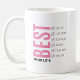 Feiern Sie Ihre Schwester an ihrem Geburtstag oder einem beliebigen Tag mit dieser individuell gestaltbaren Kaffeemaschine, die eine lustige gestreifte Typografie aufweist, die sie stolz als "Weltbeste Schwester" bezeichnet. Was diese Tasse besonders macht, ist eine anpassbare Checkliste, in der Sie sechs einzigartige Qualitäten zeigen können, die Ihre Schwester außergewöhnlich machen. Von ihrer Freundlichkeit bis hin zu ihrem Gefühl des Spaßes, können Sie jedes Element auf der Liste personalisieren, um ein einzigartiges Geschenk zu schaffen.