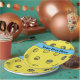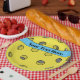 Fügen Sie dem von Künstler und Oberflächengestalter Deb Jeffrey erstellten Party-Papierschild Ihren eigenen Text, Hintergrund und Bannerfarbe hinzu.