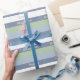 Horizontal pastellfarben, hellgrün und staubblau gestreiftes Muster und anpassbarer Text: Happy Oaster. Klicken Sie auf Bearbeiten, um den Text und den Namen nach Ihren Wünschen zu ändern.
