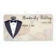 Helfen Sie Familie und Freunden, sich die Namen anderer Hochzeitsgäste mit einem individuellen Label-Tag mit Bräutigam-Tuxedo-Kunst und einem subtilen abstrakten Hintergrund zu merken oder zu lernen. Personalisieren Sie die Textfelder, entfernen Sie jeden Text oder bearbeiten Sie ihn mit dem Bearbeiten-Design-Tool, um eine Schriftart-Farbe, -größe und -Stil auszuwählen, die Sie bevorzugen. Die Größe und das Design der Versandmarke ermöglichen es, den Namen des Teilnehmers beim Empfang, beim Brautparty oder bei anderen Hochzeitsveranstaltungen hinzuzufügen.