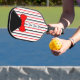 Dieses skurrile Paddeldesign zeichnet sich durch ein rotes, weißes und schwarz gestreiftes Shirt aus. Das Shirt hat silberfarbene Tasten und eine rote Bogen-Krawatte. Die Rückseite des Paddels ist schwarz mit einem Platz, wo Sie Ihr Paddel personalisieren können. Diese Paddel sind für den Einsatz durch USA Pickleball (ehemals USAPA) zugelassen. Die Paddeln sind mit meinen originalen Mustern und Designs bedruckt; fast alle können individuell angepasst werden. Sie können Ihre Griffigkeitsfarbe, schwarz, weiß oder braun wählen. Gegen Aufpreis können Sie einen Schutzhülle und einen Pickleball-Ball im Freien erwerben.