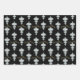 Das elegante neue Set aus Verpackungspapier enthält 3 verschiedene jazzige, raffinierte Weihnachtsmuster: 1 zeigt eine Mischung aus Ornamenten und Sternen in goldenen Farbtönen auf schwarz, der zweite hat schwarze Weihnachtsbäume auf goldfarbenem Hintergrund, der letzte hat glänzende graue Ornamente auf schwarz-grauem pinstripem Hintergrund mit "Frohe Weihnachten" in goldenen Bögen.