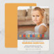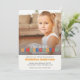 Stilvoll elegante Kindergarten Abschlussfeier Einladung. Grosses zentrales Foto mit überlagerter Überschrift aus gemischten, farbigen Buchstaben. Moderne minimalistische Typografie und Komposition. Raffiniert und jugendlich. Terrific keepake Einladung zu feiern einen spektakulären Schritt in der eigenen Ausbildung Reise.