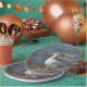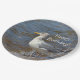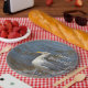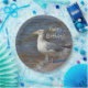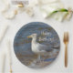 Dieser Geburtstagspapier-Teller kennzeichnet eine Seemöwe, die heraus in Richtung zum Long Island vom Hammonasset Staats-Park in Madison, Connecticut anstarrt.