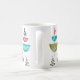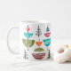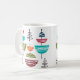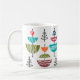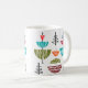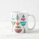 Diese Tasse hat ein modernes Design von Halbkreisen mit weißen Linien und einer Linie durch sie, die sie wie eine Antenne aussehen lässt.