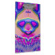 Das ist ein originelles Design. Die Rückseite und die Vorderseite sind in Rosa, Blau und Grün gehalten.