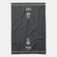 Ein schlichtes und elegantes Küchentuch mit individueller Küchennummer und Straßenname in weißer Schrift unter einer nautischen Seil- und Ankerillustrierung. Das Hotel ist ein hervorragendes Abschlussgeschenk, ein Hauswärmeschenk oder eine einzigartige Touch für Ihren Urlaub, Zuhause oder Strandhaus.