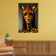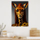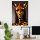 Ein Portrait einer Dame Giraffe mit langbraunem Haar, Giraffenhaut und Ohren. Das ist eine künstlerische KI.