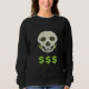 Anti Big Pharma Design zeigt einen Schädel mit verblassenden roten Augen, gekreuzten Nadeln und Dollarzeichen unten. Für diejenigen, die nicht an Big Pharma glauben.