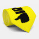 Anti-Trump / Daumen runter, Krawatte im Nacken. Gelber Hintergrund.