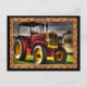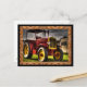 Dieser Vintage Traktor hat eine alte, braune Stahldecke. Mit alten gelben Metallfelgen. Der Körper ist rot und der Vordergrill gelb. Man kann die grauen Wolken und das grüne Gras sehen. Diese Postkarte hat einen braunen Rahmen aus Holz und den schwarzen Hintergrund. Die Hintergrundfarbe kann in eine beliebige Farbe geändert werden, die Sie mit dem benutzerdefinierten Tag gewollt haben.Diese Postkarte kann man gleichzeitig Text hinzufügen.