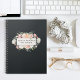 Behalt deine Termine, Kundendaten und mehr mit unserem schicken Blumenheft. Das Design zeichnet sich durch einen farbenfrohen, schwarzen Holzkohle-Hintergrund aus, auf dem Ihr Name und/oder Ihr Firmenname auf einem floralen Abzeichen in Aquarelltönen mit Blume aus Rosa, Rosa, Pfirsich und Creme steht. Ideal für Salons, Stylisten, Make-up-Künstler oder Geschäfte.