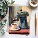 Antike Kaffeemaschine Latte Wasserfarben Karte