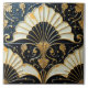 Die quadratische Art-Déco-Fliese ist symmetrisch mit schwarz-weißen Gebläsen, verzierten goldenen Blumenakzenten und einer leicht bedrückten Textur.