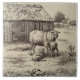 William Wise entwarf mehrere Fliesen für Minton China Works, die wie Ziegel mit unglaublichen Details aussehen. Diese Kachel stammt aus seinem Set "Tiere des Bauernhofs" und zeigt ein Mutterschafe mit ihren Lämmern vor einer Scheune. Das Original stammt aus dem Jahre 1879 und ist ein sepia-Transferware-Fliesen. Diese Fliesen waren in einer oder mehreren Farben erhältlich, darunter Schwarz, Sepia und Blau. Wir haben einige von jedem so Karo unser Geschäft für mehr.