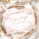 Ein sanftes und elegantes Babyshower-Design mit zarten, vintage-inspirierten rosa Toile-Illustrationen. Der Rahmen ist mit charmanten Lämmern, Blumen, himmlischen Akzenten und einer romantischen Schleife verziert und schafft eine zeitlose Ästhetik im Stil eines Geschichtenbuch-Kinderzimmers. Perfekt für eine klassische, feminine Feier mit einem raffinierten Erbstück-Feeling. Die sanfte rosa Farbpalette und der detaillierte Gravurstil verleihen dem Design eine anspruchsvolle und dennoch süße Atmosphäre, die sich sowohl für traditionelle als auch für cottagecore-Babyshower-Feiern hervorragend eignet.