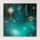 Gold, antike Schlüssel mit Gängen und Dials hängen an goldenen Ketten auf leuchtend grünem Hintergrund.