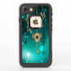 Gold, antike Schlüssel mit Gängen und Dials hängen an goldenen Ketten auf leuchtend grünem Hintergrund.
