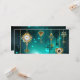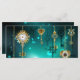 Gold, antike Schlüssel mit Gängen und Dials hängen an goldenen Ketten auf leuchtend grünem Hintergrund.