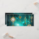 Gold, antike Schlüssel mit Gängen und Dials hängen an goldenen Ketten auf leuchtend grünem Hintergrund.