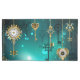 Gold, antike Schlüssel mit Gängen und Dials hängen an goldenen Ketten auf leuchtend grünem Hintergrund.