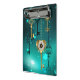 Gold, antike Schlüssel mit Gängen und Dials hängen an goldenen Ketten auf leuchtend grünem Hintergrund.
