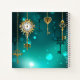 Gold, antike Schlüssel mit Gängen und Dials hängen an goldenen Ketten auf leuchtend grünem Hintergrund.