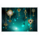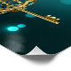 Gold, antike Schlüssel mit Gängen und Dials hängen an goldenen Ketten auf leuchtend grünem Hintergrund.