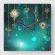 Antike Skeleton Keys on Green Background Quadratische Wanduhr