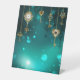 Gold, antike Schlüssel mit Gängen und Dials hängen an goldenen Ketten auf leuchtend grünem Hintergrund.
