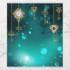 Gold, antike Schlüssel mit Gängen und Dials hängen an goldenen Ketten auf leuchtend grünem Hintergrund.