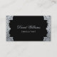 Eine elegante Visitenkarte, die Vintage und links Rahmen mit antiken Imitaten silbernen Dekorationen hat. Der Hintergrund ist schwarz. Auf der Vorderseite, der Name" ist in einem eleganten kalligrafischen Skript geschrieben. Der gesamte Text ist silbergrau, wie die Grenzen. Es hat einen QR-Code auf der Rückseite, bis zum links. Die elegante Golddekoration stammt aus einem Vintagen französischen Buchcover, der aus dem späten 19. Jahrhundert stammt und heute im öffentlichen Besitz von Nicolas Denis Derome (1731-1790), bekannt als Derome le Jeune, für ein Buch mit dem Titel "Gaspar Pergam Epistol" steht.
