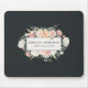 Die elegante Mousepad-Mousepad-Mousepad-Mousepad-Mousepad mit ihrem Namen und/oder ihrem Firmennamen, gerahmt durch eine Blume von üppigen Aquarellfarben in Rosa, Salbei, Pfirsichgrün und Creme, auf einem kontrastierenden, tief gebürsteten Holzkohle vor schwarzem Hintergrund.