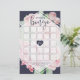 Diese eleganten Bingokarten mit Blumenmuster, die auf die Einladungen der Brause aus dem antiken Peony abgestimmt sind, verfügen über einen dunkelblauen Hintergrund, leere Bingokarte und Spielanleitungen.