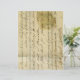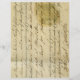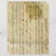 Beängstigendes und wassergefärbtes Blatt antiker englischer Ephemerien mit Schrift-Handschrift.