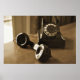 Sepia-gefärbtes Foto eines antiken Telefons.