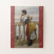 Antizipation Italienischer Maler Eugen von Blaas (1843 - 1931) aus der Zeit des akademischen Klassizismus. Obwohl er oft Venezianische Szenen malte, malte er auch viele Portraits und religiöse Kunstwerke. Eine wunderschöne italienische junge Dame mit einer roten Blume im Haar, die ein langes zweiteiliges, weißes und goldenes Kleid mit Korsett und einer roten Schürze an der Taille trug, wartet auf einen Balkon an den Docks mit einer Pflanze von ihren Füßen und wartet darauf, dass die Boote an Land kommen. Dies ist eine retuschierte digitale Kunst alten Meistern Reproduktion eines öffentlichen Bildes.