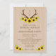 Cette élégante invitation au mariage présente une décoration avec des bois et des tournesols sur un arrière - plan en bois. Les initiales de la mariée et du marié sont ajoutées au sommet. Le design est rustique et moderne. Cette carte peut être utilisée pour un événement toute l'année.
