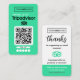 Eine einfache, benutzerdefinierte Anforderung für das Unternehmen, um eine TripAdvisor-Überprüfung mit scannbarem QR-Code verlassen. Die vielseitige Vorlage kann einfach mit Ihrem Firmenlogo, Grafik oder Foto, QR-Code und individuellem Text personalisiert und bearbeitet werden. Das Rezensionslogo kann leicht durch ein anderes ersetzt werden (z.B. Google, Yelp, Facebook, Trustpilot), um ein wirklich maßgeschneidertes berufliches Design zu machen, das Ihnen hilft, Ihr Unternehmen zu wachsen! Denken Sie daran, den eindeutigen Link für die Seite "Rezension schreiben" für Ihr Unternehmen auf TripAdvisor für den scannbaren QR-Code hinzuzufügen. Brauchst du Hilfe? Kontaktieren Sie mich bitte über den Meldungsknopf. Ich helfe Ihnen gerne bei Ihrer Personalisierung, wie zum Beispiel beim Hinzufügen verschiedener Icons, QR Code Generierung und mehr!