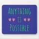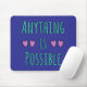 A charming and uplifting design featuring the inspirational phrase "Anything is Possible" in soft light teal, accented with two sets of delicate pink hearts to spread positivity and love.